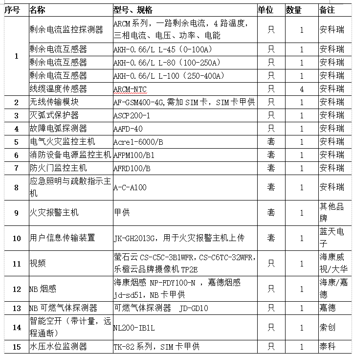 注:以下配置為針對(duì)1個(gè)回路選型,其中剩余電流互感器應(yīng)根據(jù)現(xiàn)場(chǎng)回路電流大