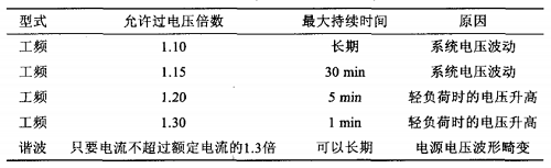 表1 電力電容器的過(guò)電壓標(biāo)準(zhǔn)