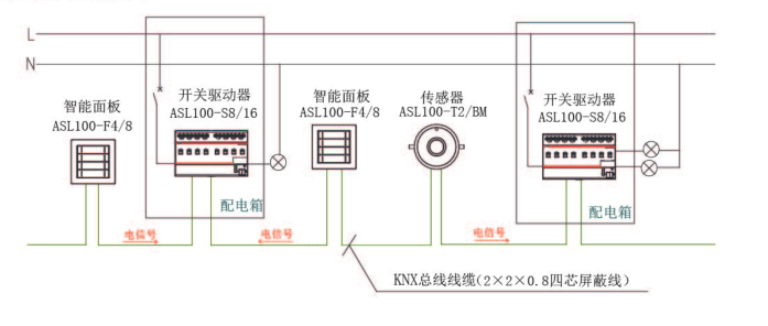 4)系統(tǒng)采用分布分布式KNX總線結(jié)構(gòu),搭建簡單靈活,系統(tǒng)內(nèi)各模塊互不影響,可獨(dú)立工作,可靠性更高;