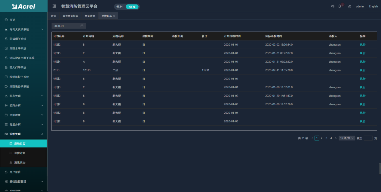安科瑞智慧消防綜合管理云平臺(tái)基于物聯(lián)網(wǎng)、大數(shù)據(jù)、云計(jì)算等現(xiàn)代信息技術(shù),將分散的火災(zāi)自動(dòng)報(bào)警設(shè)備、電氣火災(zāi)監(jiān)控設(shè)備、智慧煙感探測器、智慧消防用水等設(shè)備連接形成網(wǎng)絡(luò),并對(duì)這些設(shè)備的狀態(tài)進(jìn)行智能化感知、識(shí)別、定位,實(shí)時(shí)動(dòng)態(tài)采集消防信息,通過云平臺(tái)進(jìn)行數(shù)據(jù)分析、挖掘和趨勢分析,幫助實(shí)現(xiàn)科學(xué)預(yù)警火災(zāi)、網(wǎng)格化管理、落實(shí)多元責(zé)任監(jiān)管等目標(biāo)。填補(bǔ)了原先針對(duì)“九小場所”和?;飞a(chǎn)企業(yè)無法有效監(jiān)控的空白,適應(yīng)于所有公建和民建,實(shí)現(xiàn)了無人化值守智慧消防,實(shí)現(xiàn)智慧消防“自動(dòng)化”、“智能化”、“系統(tǒng)化”、用電管理“精細(xì)化”的實(shí)際需求。