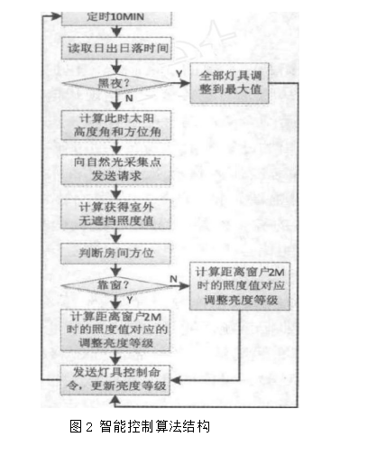 (1)隨著戶外自然光照強度的上升:戶內(nèi)人工照明燈具的亮度將隨之降低,反之,戶外自然光強度下降,戶內(nèi)照明燈具的亮度將升高。(2)根據(jù)太陽位置以及東升西落的特點對不同朝向的窗邊照明的影響,人工室內(nèi)照明要做不同權(quán)重的亮度調(diào)節(jié)。(3)戶內(nèi)人工照明實行梯級調(diào)光,即根據(jù)燈具與較近窗戶的距離不同而采用不同權(quán)重的調(diào)光。目前采用靠窗與不靠窗兩級策略。(4)戶內(nèi)燈具根據(jù)燈具類型分為可調(diào)光和不可調(diào)光兩類,前者實行8級調(diào)光,亮度等級隨自然光照明的變化改變。 不可調(diào)光只有開/關(guān)兩種功能,當自然光照明低于某閡值時, 則自動開啟.