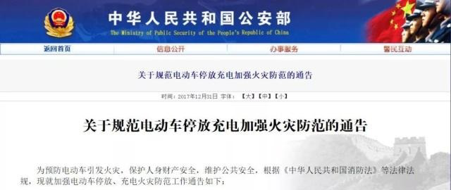 日公安部消防局發(fā)布《關(guān)于規(guī)范電動(dòng)車停放充電加強(qiáng)火災(zāi)防范的通告》,要求充分認(rèn)識(shí)電動(dòng)車火災(zāi)危害,落實(shí)停放充電管理責(zé)任,規(guī)范電動(dòng)車停放充電行為,嚴(yán)厲查處違規(guī)停放充電行為。
