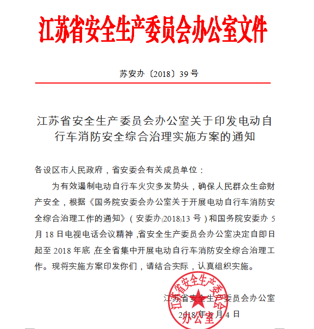 日國務(wù)院發(fā)布《國務(wù)院安委會辦公室關(guān)于開展電動自行車消防安全綜合治理工作的通知》開展電動自行車消防安全綜合治理工作。